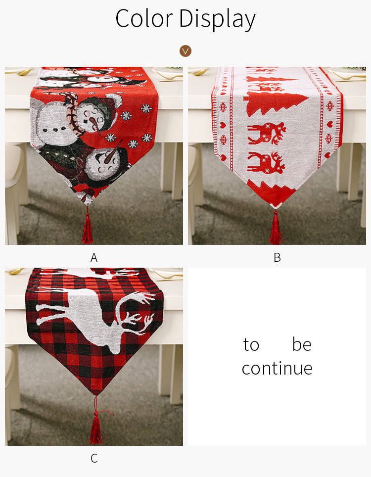 Specifications Electric embroidered knitted fabric table runner snowman style, electric embroidered knitted fabric table runner small tree style, electric embroidered knitted fabric table runner elk style